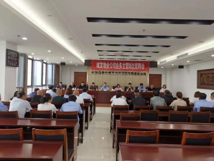 7月16日,物業公司在城發集團辦公樓18樓會議室舉辦了為期一天的業務主管競聘會。物業公司班子成員、處室負責人、項目處負責人擔任評委,參加競聘會的還有相關單位的特邀代表,經理史濤主持本次活動。