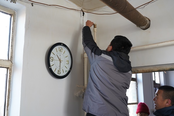 在回訪村中二站南線的路上,一位年近九十的大娘著急地朝我們走來(lái)。她說(shuō):"到我家看看吧,暖氣不熱。"工作人員跟隨老人來(lái)到其家中。大娘家為小南房,大約20平米左右,四面漏風(fēng),她的老伴身著棉衣盤腿坐在炕上。工作人員開(kāi)始進(jìn)行排氣、調(diào)節(jié)閥門、檢查過(guò)濾器,最后排查發(fā)現(xiàn)管道內(nèi)有異物堵塞,經(jīng)過(guò)排污,大娘家中的暖氣逐漸升溫。大爺激動(dòng)地說(shuō):"你們給我修暖氣,忙的連口水也沒(méi)喝,娃娃們真好!我家院里有李子樹(shù),明年李子熟了,你們過(guò)來(lái)吃。"客服處處長(zhǎng)云躍看著大爺家簡(jiǎn)陋的窗戶,略有所思.....稍后他說(shuō):"我們過(guò)幾天給大爺家安裝棉窗簾和門簾,讓溫暖到位、服務(wù)到位,室溫達(dá)標(biāo),讓老兩口溫暖過(guò)冬。"