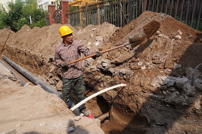 白云偉說,"這段供熱管線下面還有一段天然氣管線。這段管溝長度僅55米多,但施工難度較大,機(jī)具僅開挖了表層,其余是人工開挖,人工開挖就進(jìn)行了三天,55米管溝開挖、鋪設(shè)管道就用了一周的工期。"