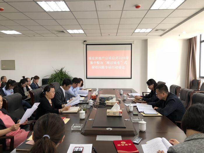 上午,城發(fā)房地產(chǎn)公司黨支部組織召開了房地產(chǎn)公司2018年集中整治雁過拔毛式腐敗問題專項行動會議,公司全體干部職工共30人參加會議。
