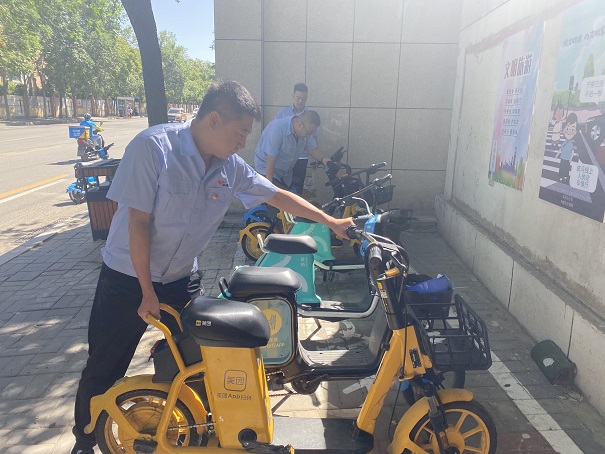 上午9點,黨員們來到學苑東街與展覽館東路的共享單車停放區域,對共享單車亂停亂放現象進行了集中整理,以防止公共交通路段出現擁堵現象,并對現場發現的不文明停車行為進行了勸導,并向市民宣傳文明出行、規范停車等內容,收到了良好的社會效果。